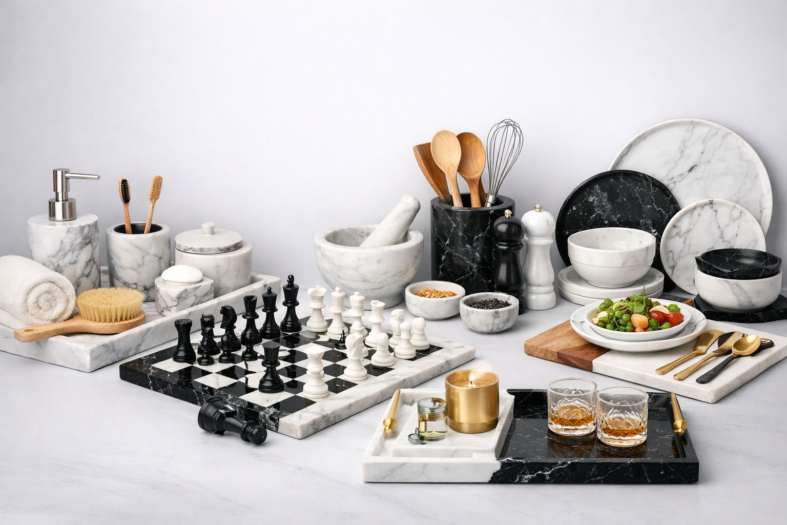 Luxury feel! The marble tableware collection is perfect for hosting dinners.